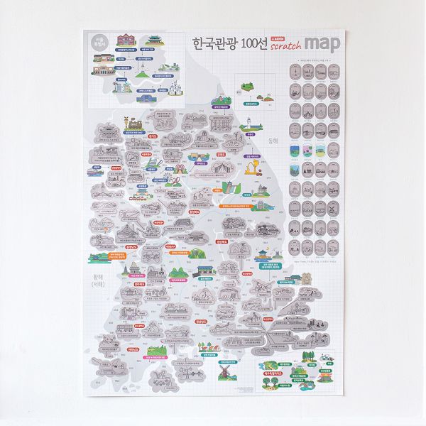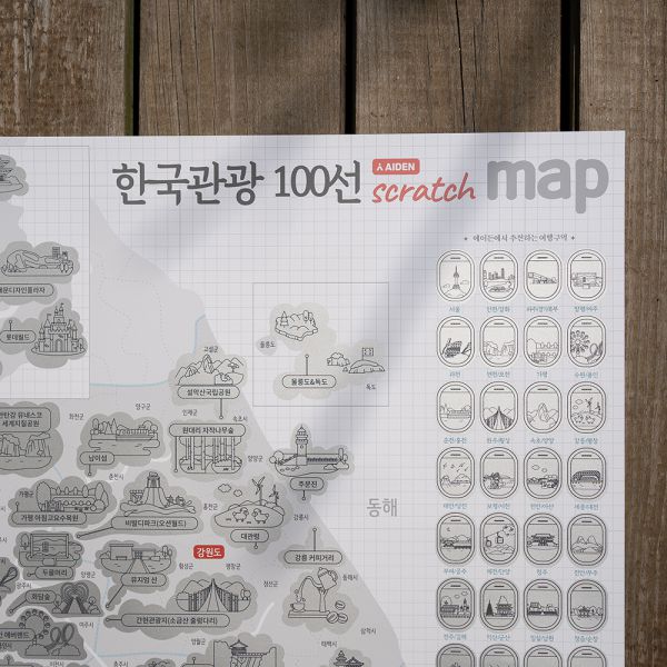 ♡한국관광공사 추천 여행지 지도♡ [에이든] 한국 관광 100선 스크래치맵 (초등학생 여행 추천, 가족 여행 지도)