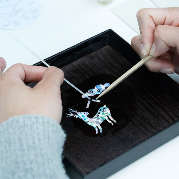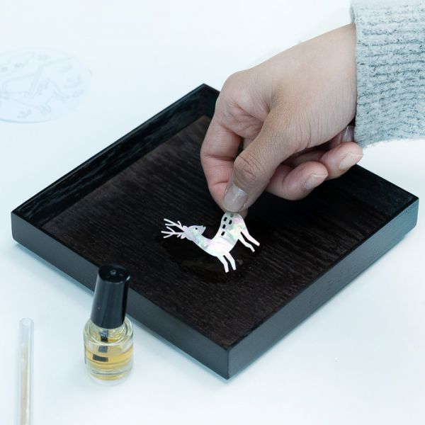 한국의 전통 재료인 자개에 대해서 배우고, 나전칠기기법을 배워볼 수 있는 자개공예 체험키트입니다.