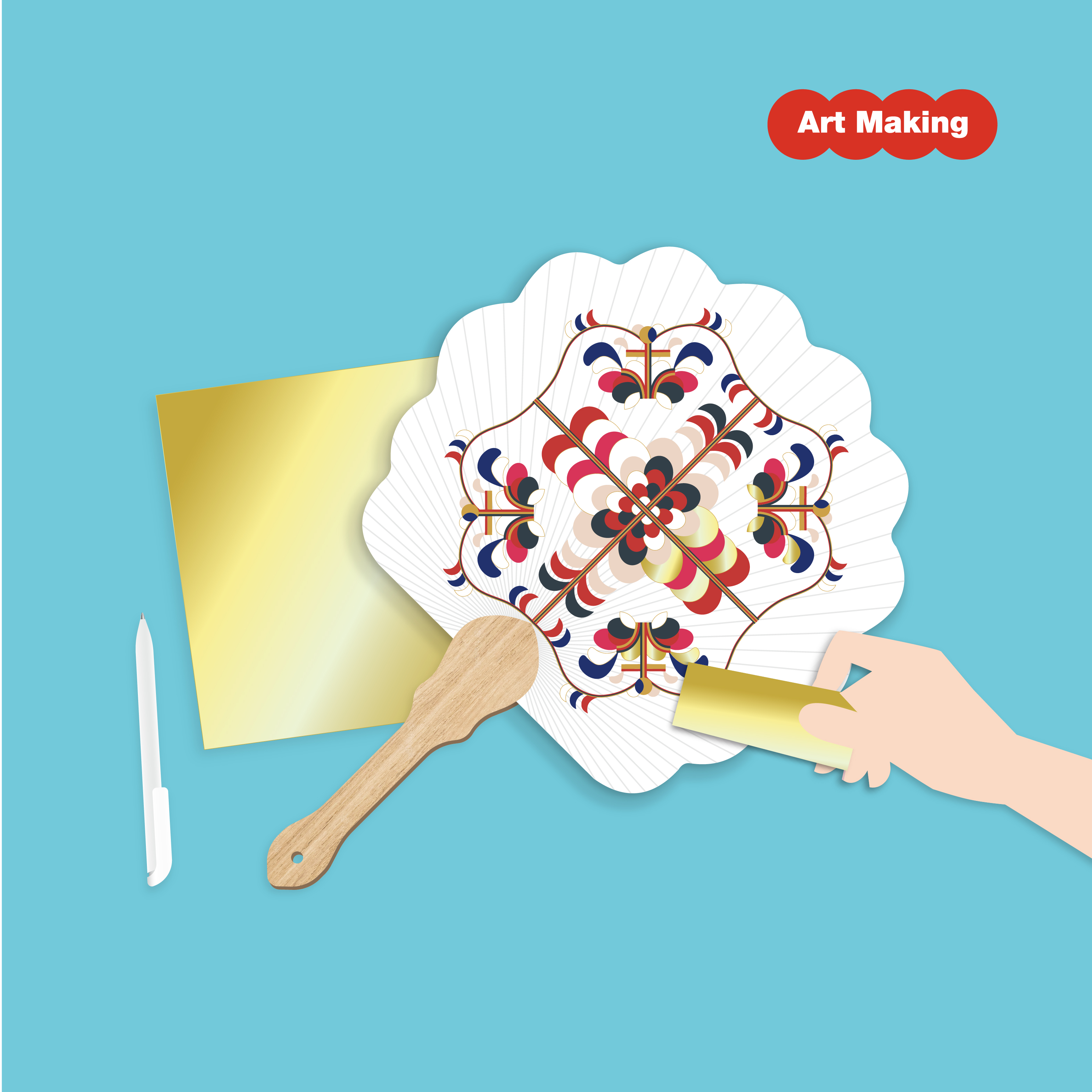한지 전통문양 금박 포일 장식 꽃 부채 꾸미기 (호일아트기법, 외국인친구선물, 어린이 단체 수업, 예술 교구)