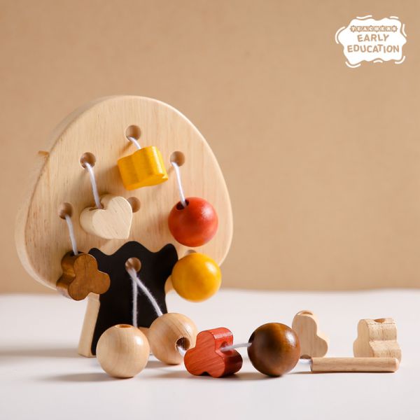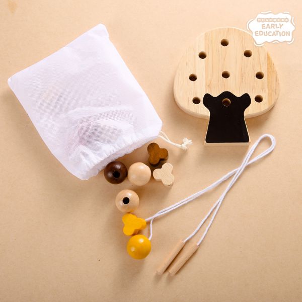 얼리에듀 실꿰기 원목 블록 나무 장난감 교구