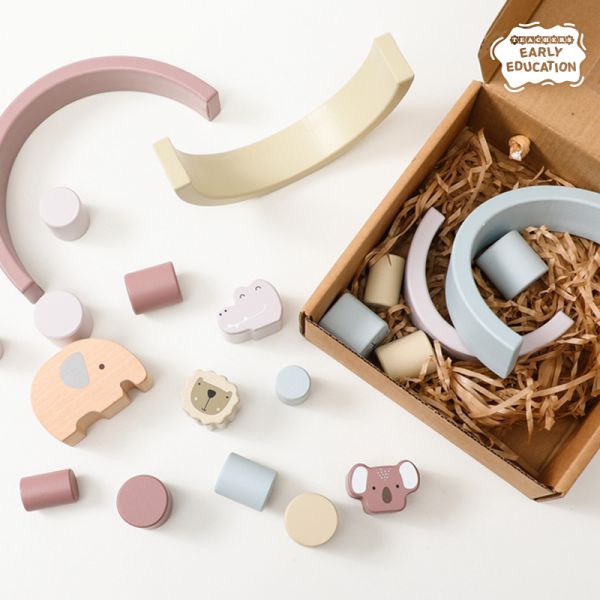 얼리에듀 레인보우 밸런스 블록-원목 교구 나무 블럭 쌓기