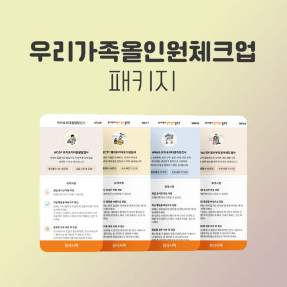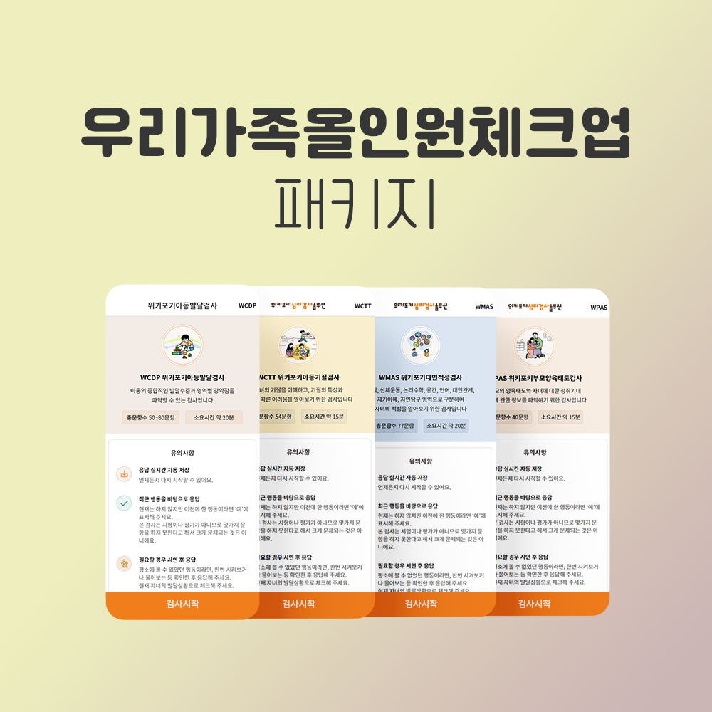 [패키지]우리가족올인원체크업(기질검사+발달검사+다면적성 +부모양육태도검사)