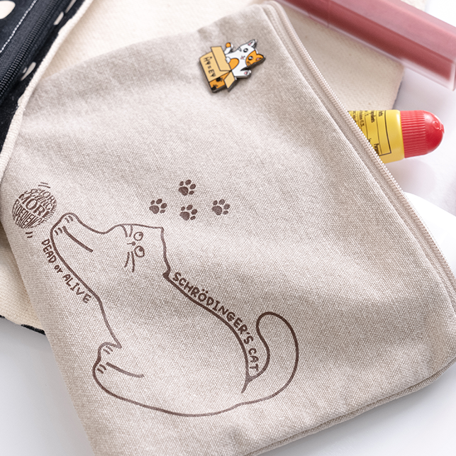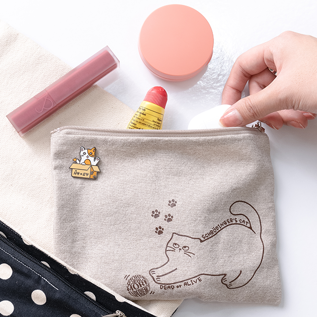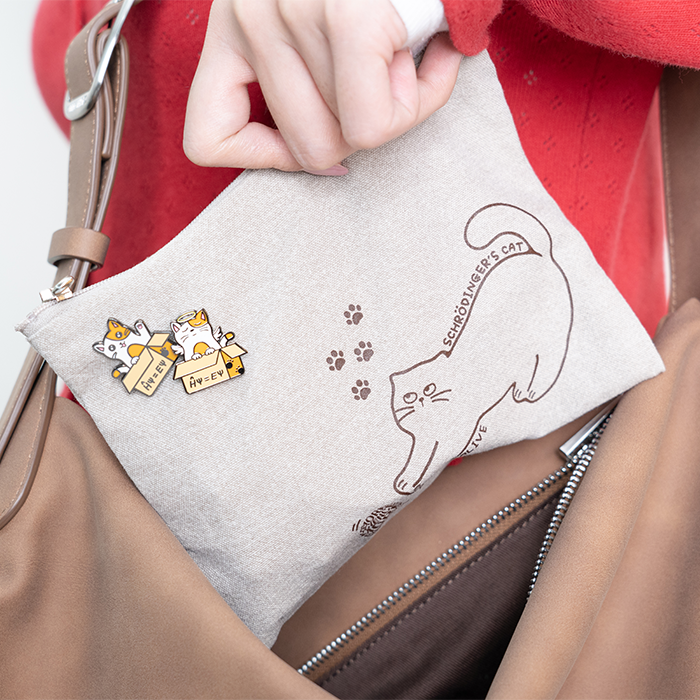 양자역학의 대표적인 사고 실험인 '슈뢰딩거의 고양이'를 모티브로 한 파우치