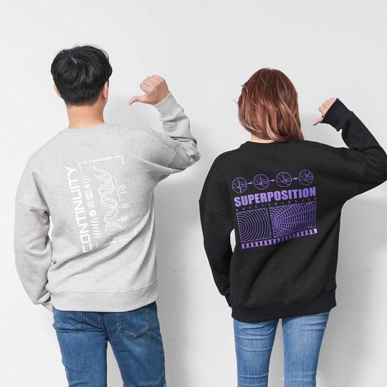 블랙 맨투맨 기모 남자 여자 오버핏 양자역학 큐비트 과학 굿즈 (안될과학 모어사이언스)