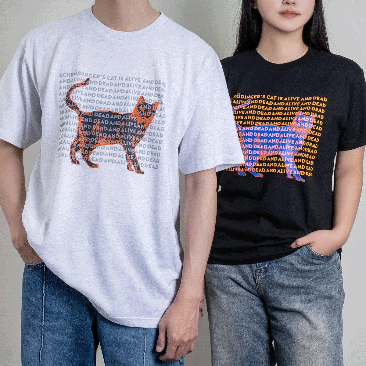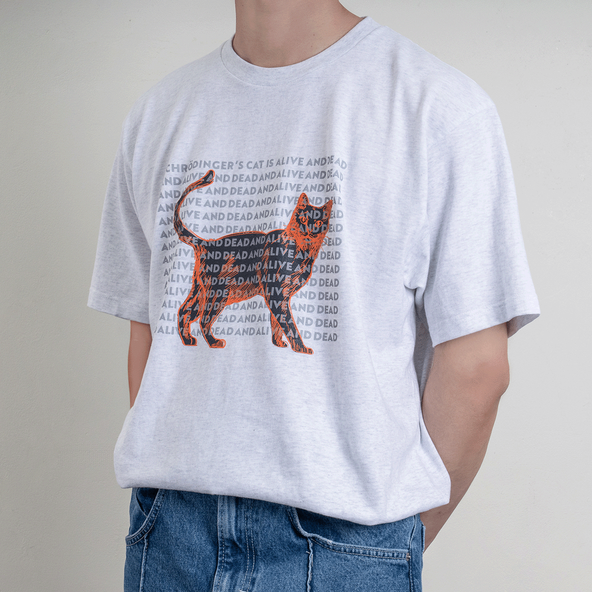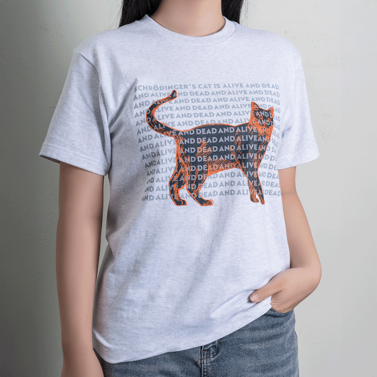 양자역학, '슈뢰딩거의 고양이'를 모티브로 한 티셔츠