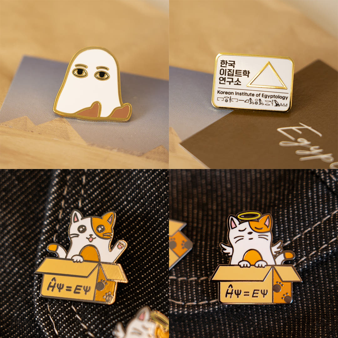 이집트 메제드 로고 금속 배지 브로치 슈뢰딩거 고양이 양자역학 캐릭터 뱃지 (모어사이언스)